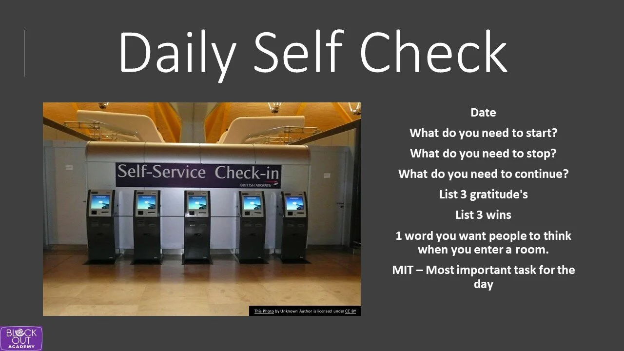It helps our athletes to have visual images and words to connect with on a regular basis. They know every time they walk through the door they will do the Daily Self Check. So that makes it more likely that they will have a thoughtful response and be more in touch with their body, mind, and spirit. They see these other slides, too. The repetition of the visual images helps reinforce important ideas and motivations that will enable them to work hard and execute with excellence.